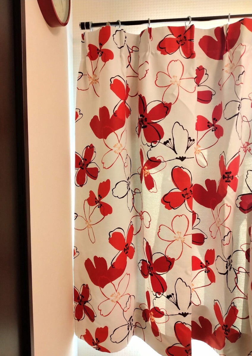 - 匿名送料込み 美品 interix インテリックス オーダーカーテン 花柄 花 張りがある素材 幅106×高129㌢が2枚 アジャスター付き