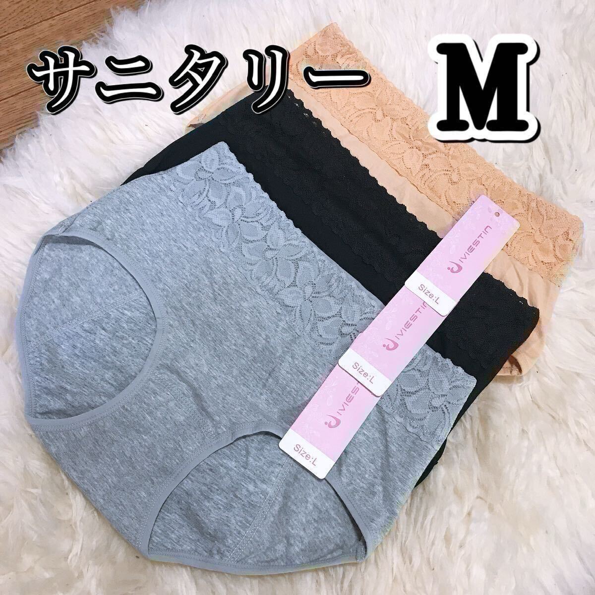 > サニタリー ショーツ 3枚セット ブラック 黒 Mサイズ 生理用 産褥 マタニティ 防水 下着 生理 パンツ レース ベージュ 肌色 グレー 灰色