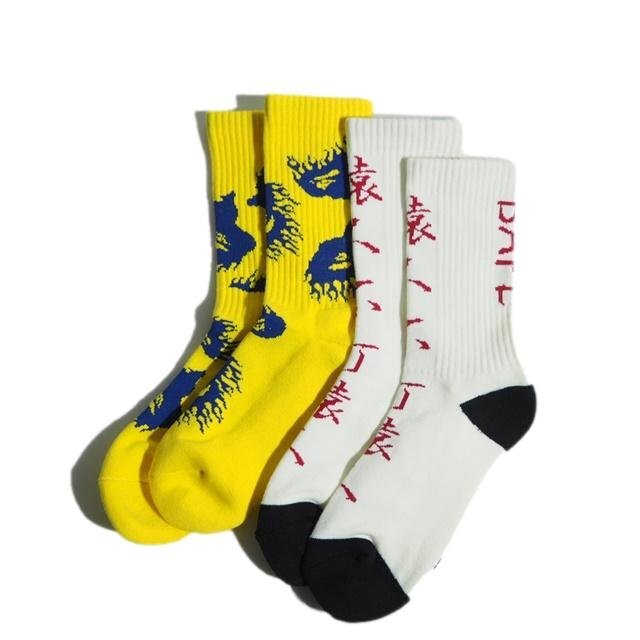 - P6744f13 ■A BATHING APE エイプ■ ソックス 2点セット イエロー、ホワイト S / コットン ロゴ入り 靴下