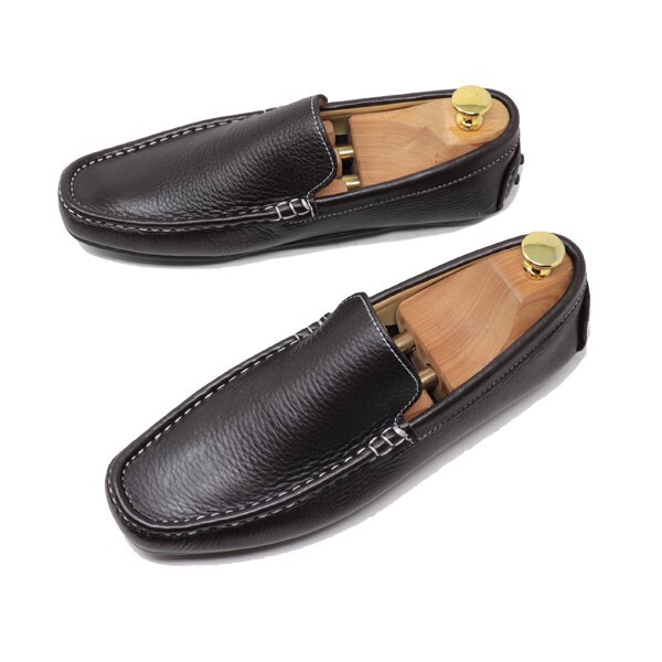> 訳あり☆本革 26cm ドライビングシューズ スリッポン ローファー 牛革 ハンドメイド マッケイ製法 ダークブラウン シャモワ風 820