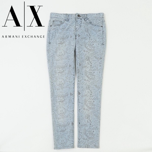 - ◆ARMANI EXCHANGE アルマーニ エクスチェンジ ロゴ 総柄 ストレッチ デニム ローライズ スキニー パンツ ジーンズ サックスブルー 2