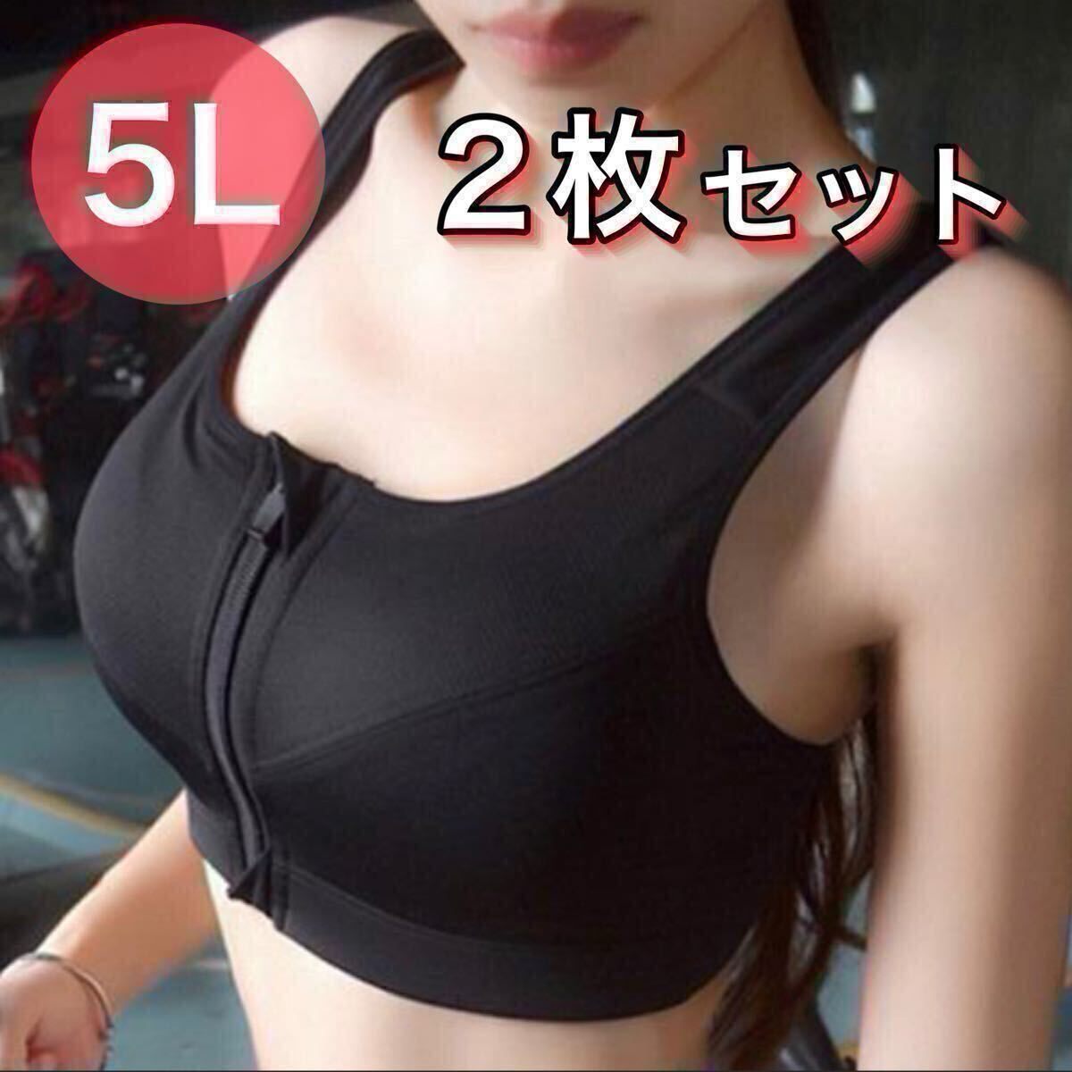 > ブラジャー ノンワイヤー スポーツブラ ジッパー ファスナー フィットネス ジム 5L XXXXL ブラック 黒 授乳ブラ C85 D85 B90 C90 2枚