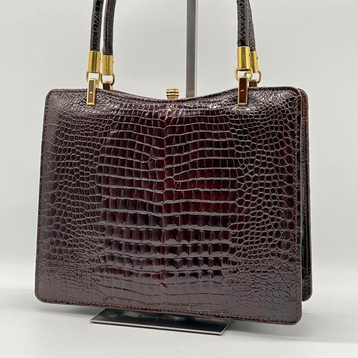 > 【美品】FOURI シャイニング クロコダイル エキゾチック ハンドバッグ トートバッグ フォーマル レディース 通勤 通学 ブラック BF141219A