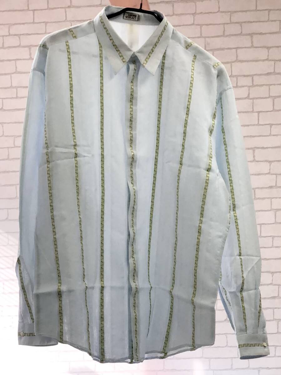 - [AHB]12-USED GIANNI VERSACE(ジャンニ・ヴェルサーチェ) 長袖シャツ(水色/花のライン/サイズ52/メンズ)