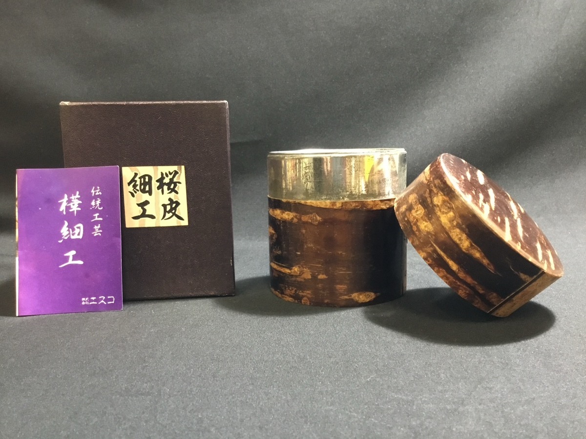 『桜皮細工 総皮茶筒 樺細工 茶入 茶壺 茶心壷 無地皮 茶器 煎茶道具』