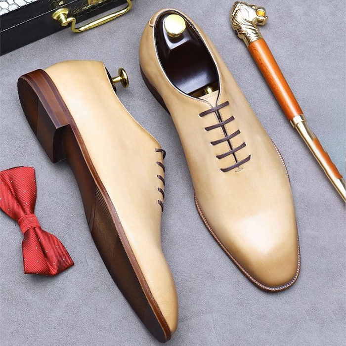 > 本革 牛革 メンズ シューズ ビジネスシューズ ローカット スクエアトゥ ドレスシューズ レザーシューズ Zxe0919 イエロー 28.0cm