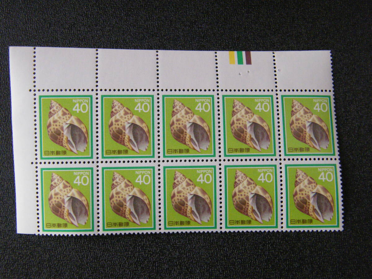 - バイガイ 40円 カラーマーク上 10枚ブロック 未使用 1980年シリーズ(CM付)