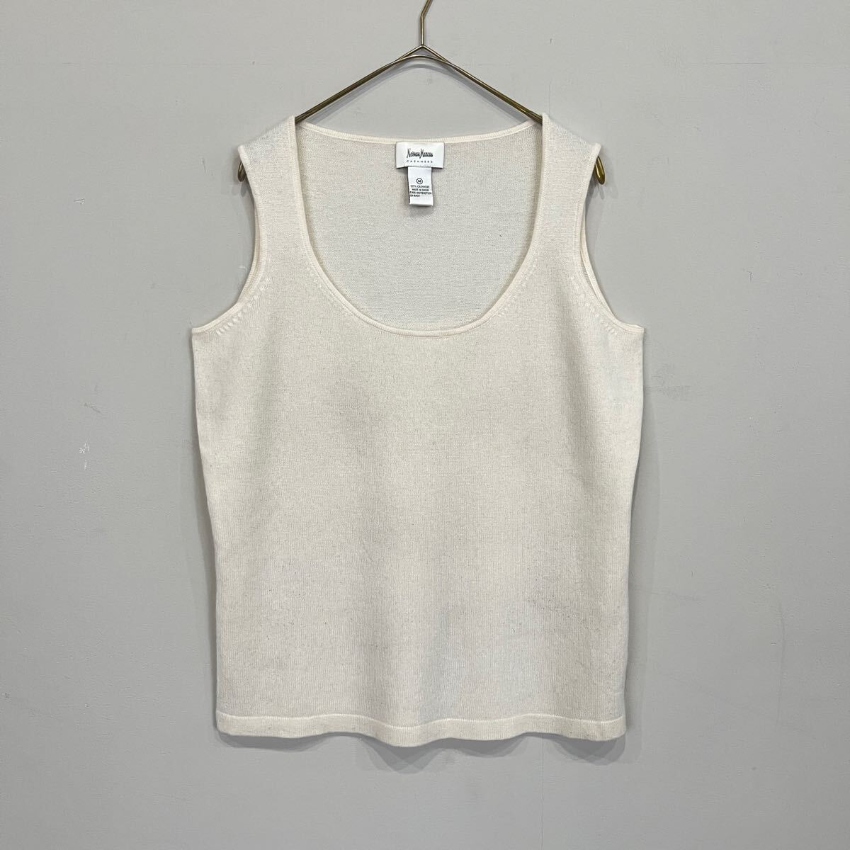 > cashmere カシミヤ100 ニット ベスト タンクトップ ノースリーブ ノースリーブセーター M ホワイト フロントシミあり レディース