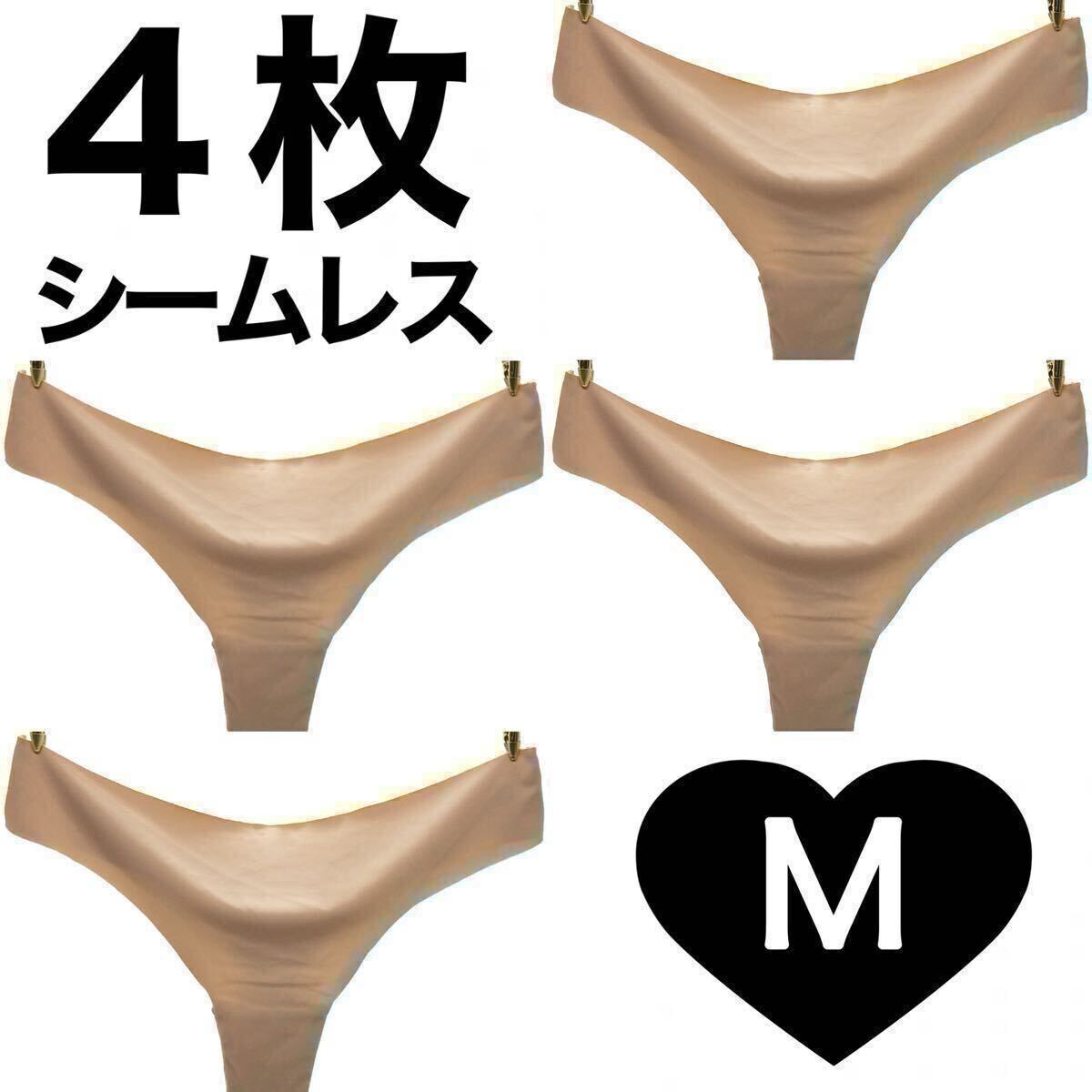 - Tバック シームレス ショーツ 4枚 セット Mサイズ ベージュ 肌色 パンツ 下着 レディース Tバックショーツ ストレッチ シンプル 伸縮性
