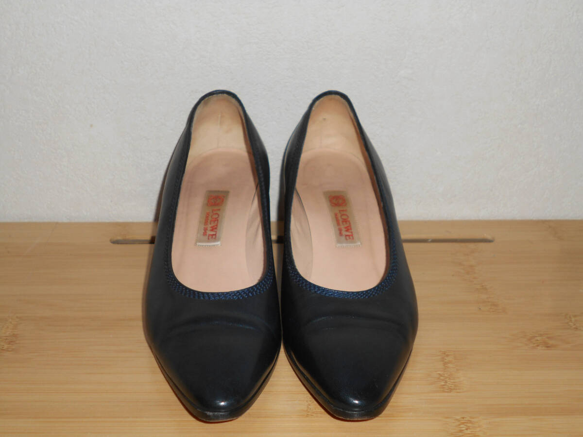 > LOEWE ロエベ ブラウン 本革レザー パンプス 濃紺 サイズ 37 (2B ハ中