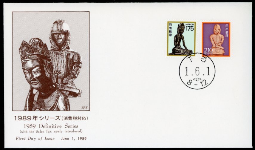 - 0318 【FDC】新動植物国宝 175円「弥勒菩薩像」・210円「はにわの兵士」[下谷/1.6.1/JPS]