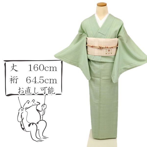 - 【小紋 】 単衣 塩沢お召 細やか絣織り 淡いグリーン 正絹着物 KG9-3