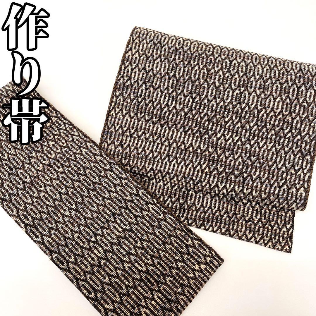 - 【着物と帯 時流】O25156◆正絹 二部式 作り帯◆自由型 茶色 軽装帯 美品