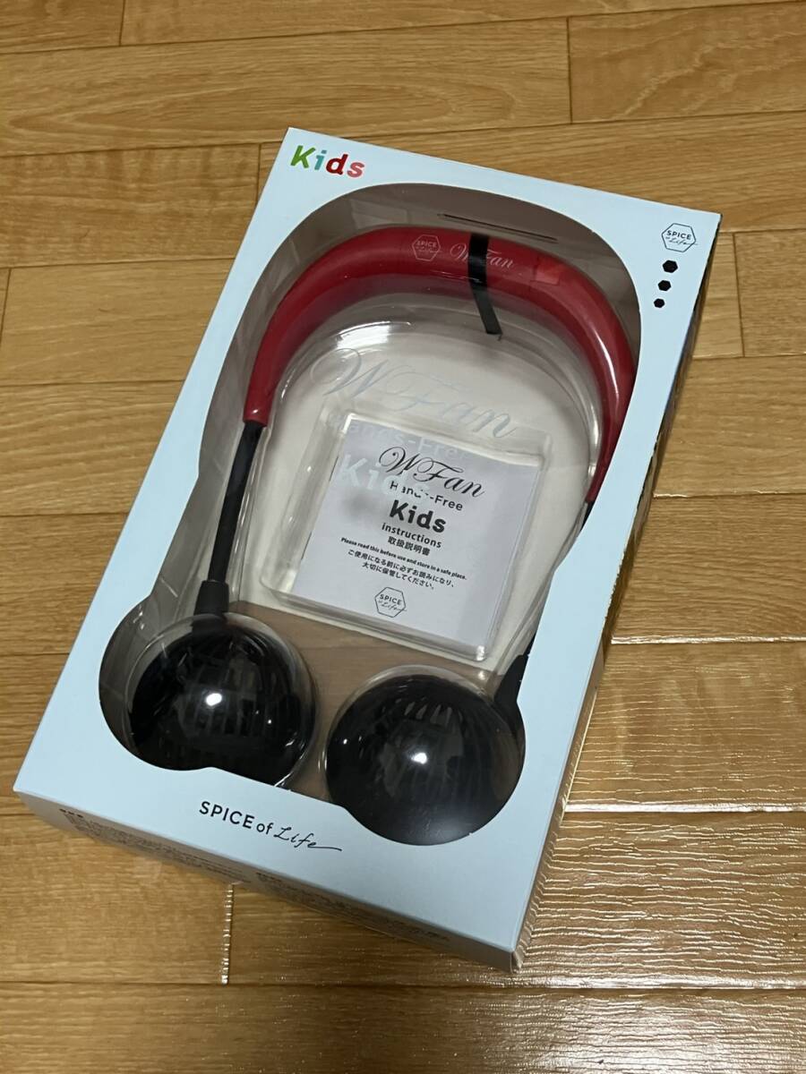 - ☆SPICE W FAN ハンズフリー キッズ用ポータブル扇風機/首掛け扇風機 乾電池式 1回のみ使用 レッド/ブラック☆