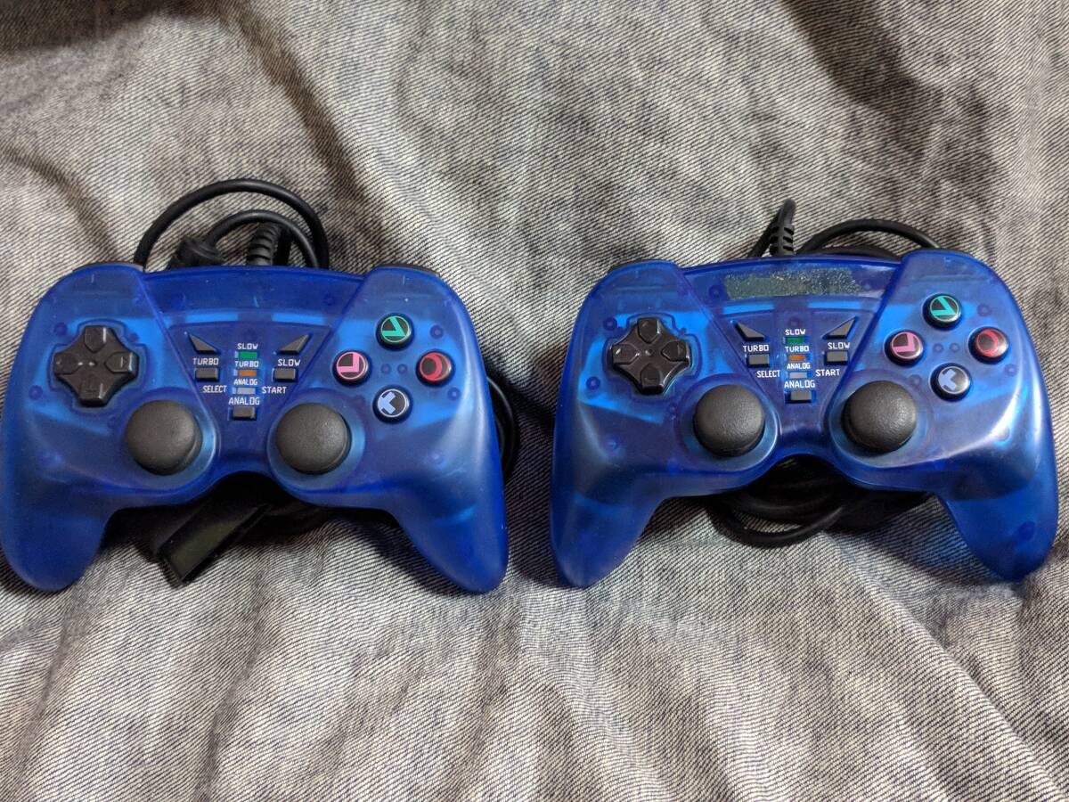 > 2つ ゲームテック PS2用/PS用 連射振動機能付きアナログコントローラ アナログ連射コントローラ BPT2 クリア ブルー
