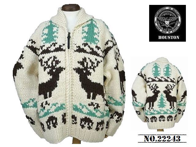 > 【送料無料 30%OFF】HOUSTON ヒューストン HAND KNIT・手編み カウチンセーター 「 DEER」 NO.22243 NATURAL_Lサイズ