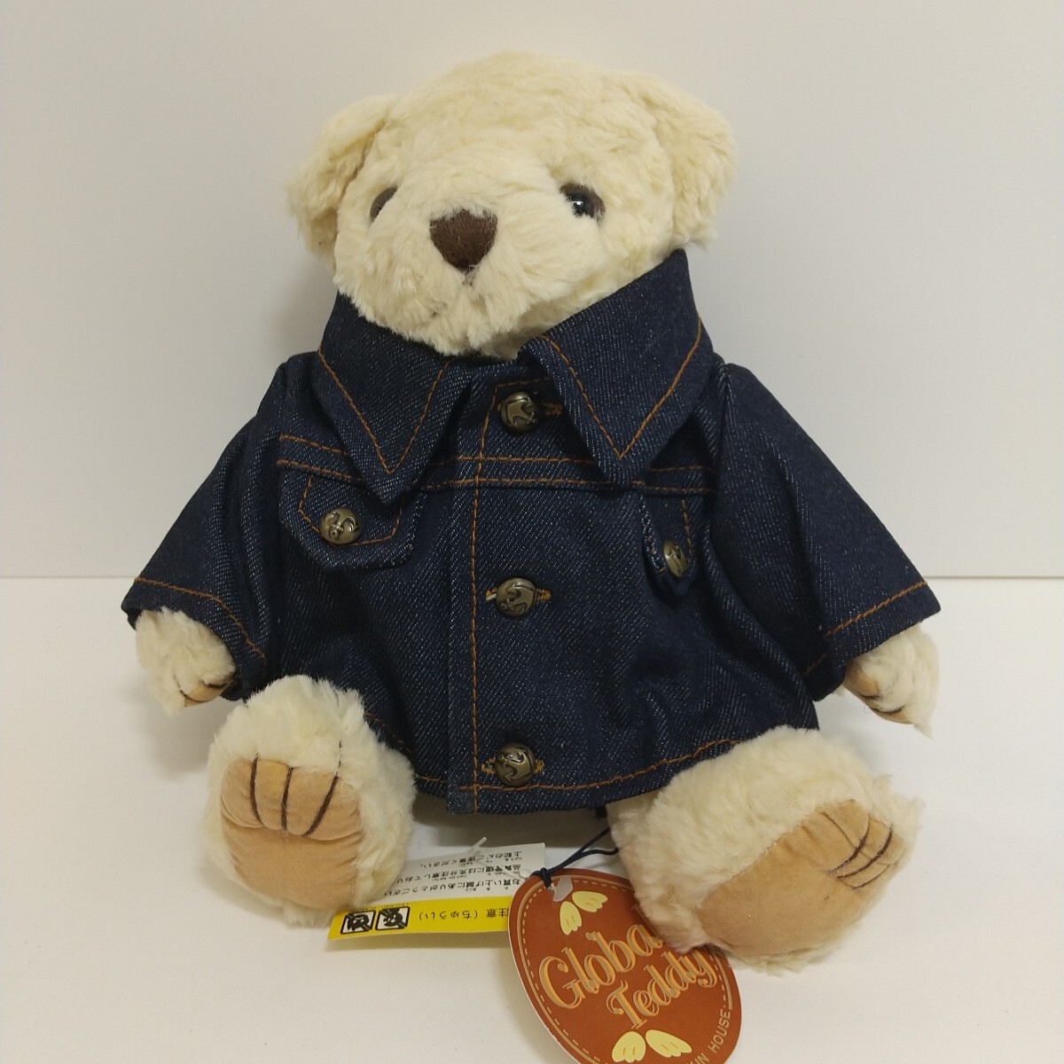 > 101 中古 テディベア デニムジャケット着用 Global Teddy グローバルテディ HIROKUN HOUSE ヒロクンハウス ぬいぐるみ 紙タグ付