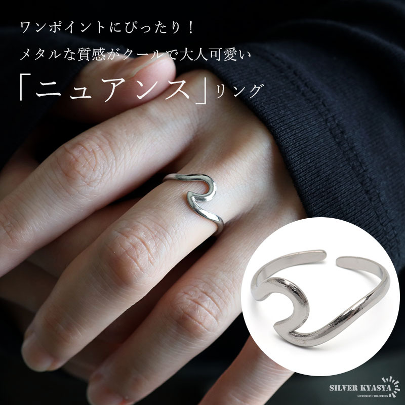 - ステンレス ニュアンスリング メタルリング オープンリング ウェーブリング 指輪 レディース 女性 金属アレルギー対応 プチプラ