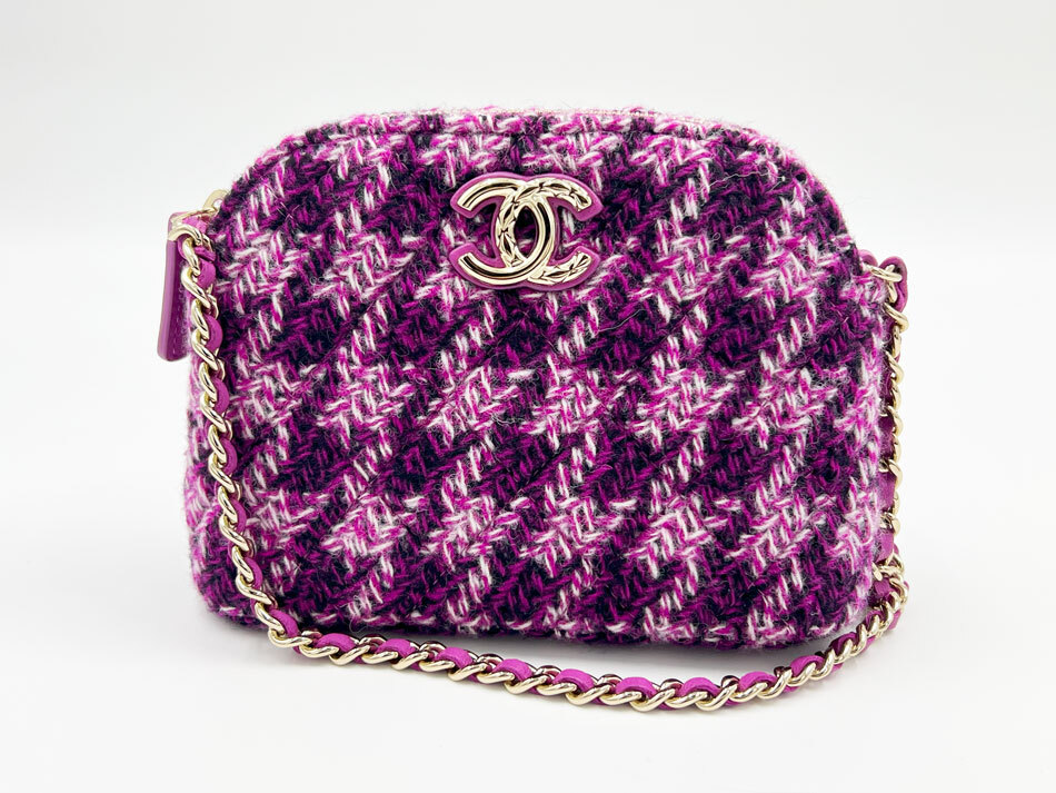 > CHANEL シャネル チェーンショルダーバッグ ポーチ ツイード パープル 2024年 イヤーズギフト ノベルティ 超美品