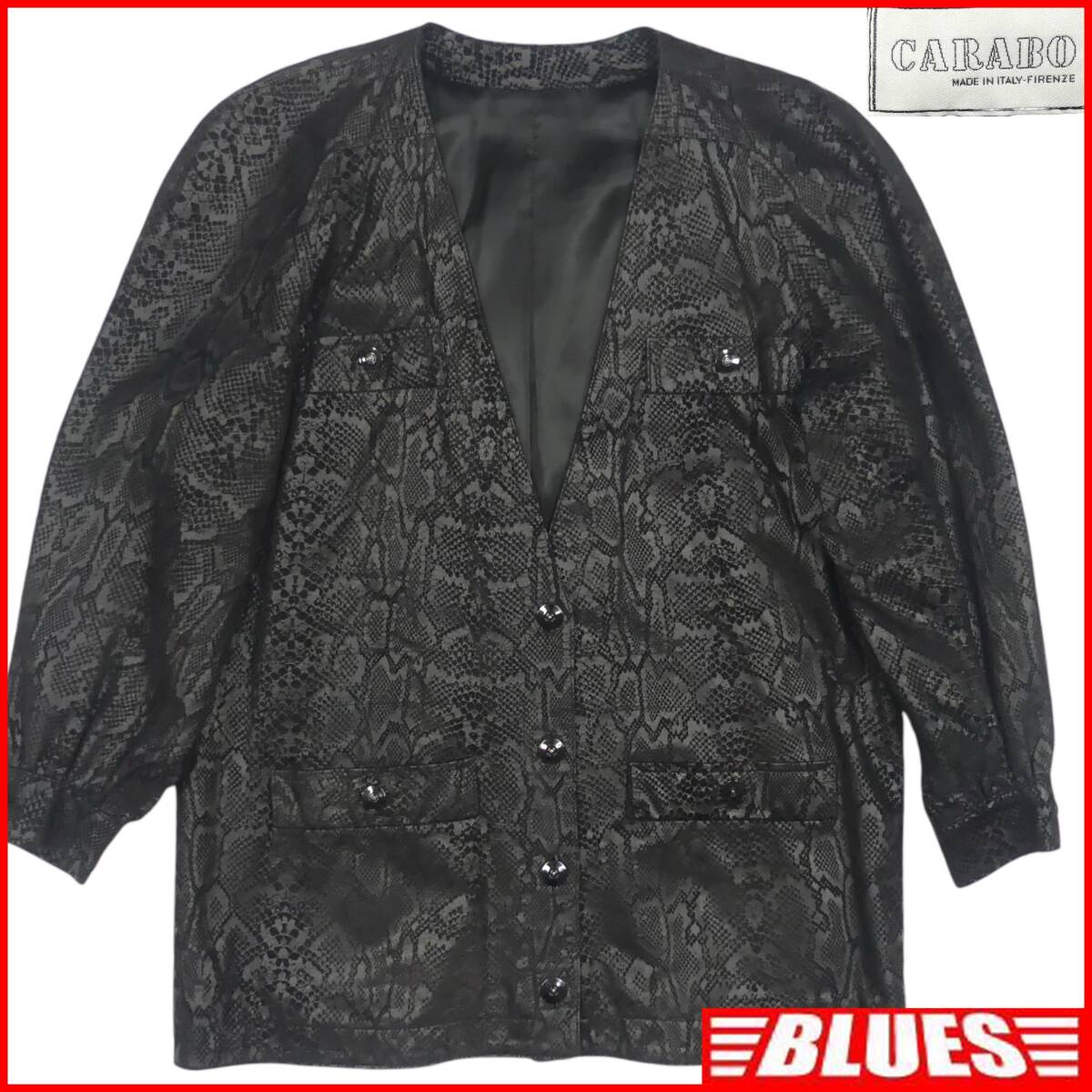 > 即決★イタリア製 CARABO★メンズ M レザーテーラードジャケット カラボ 40黒 パイソン柄 本革 ブレザー 本皮 スーツ 革ジャン 背広