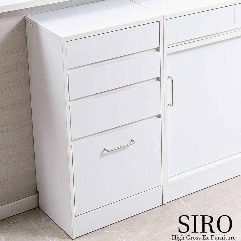 > チェスト 引出し付き引戸式 カウンター下収納 幅45cm 4段 ハイグロスホワイト 背面化粧仕上げ キッチン キッチン収納