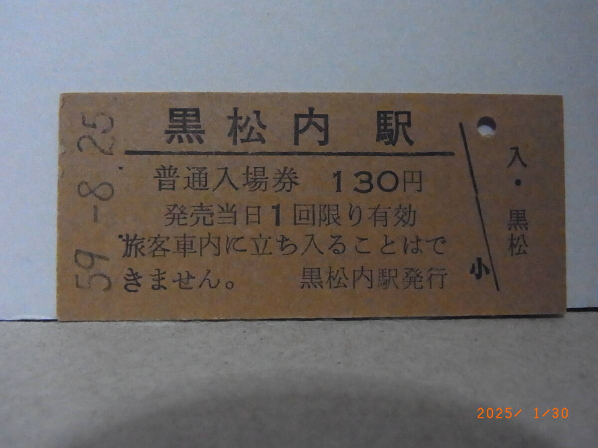 - 国鉄 函館本線 黒松内駅 130円普通入場券 昭59.8.25 0256 ★送料無料★