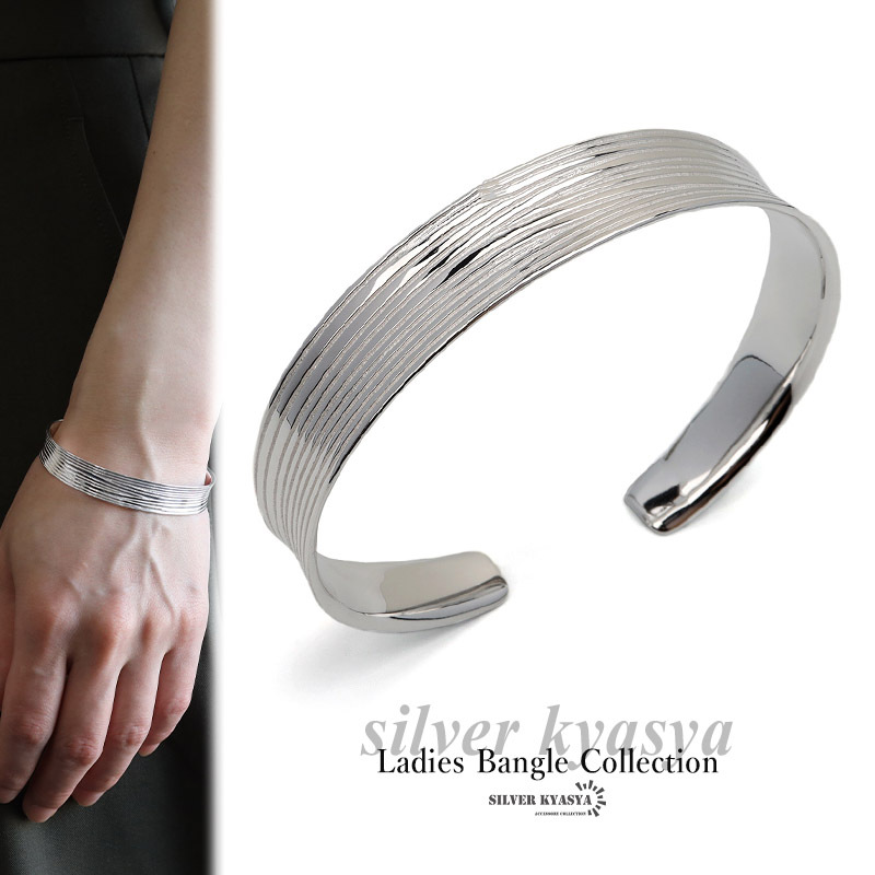 > ラインバングル シルバー925 大ぶり 不揃い レディース ブレスレット シルバー シンプル カジュアル 人気