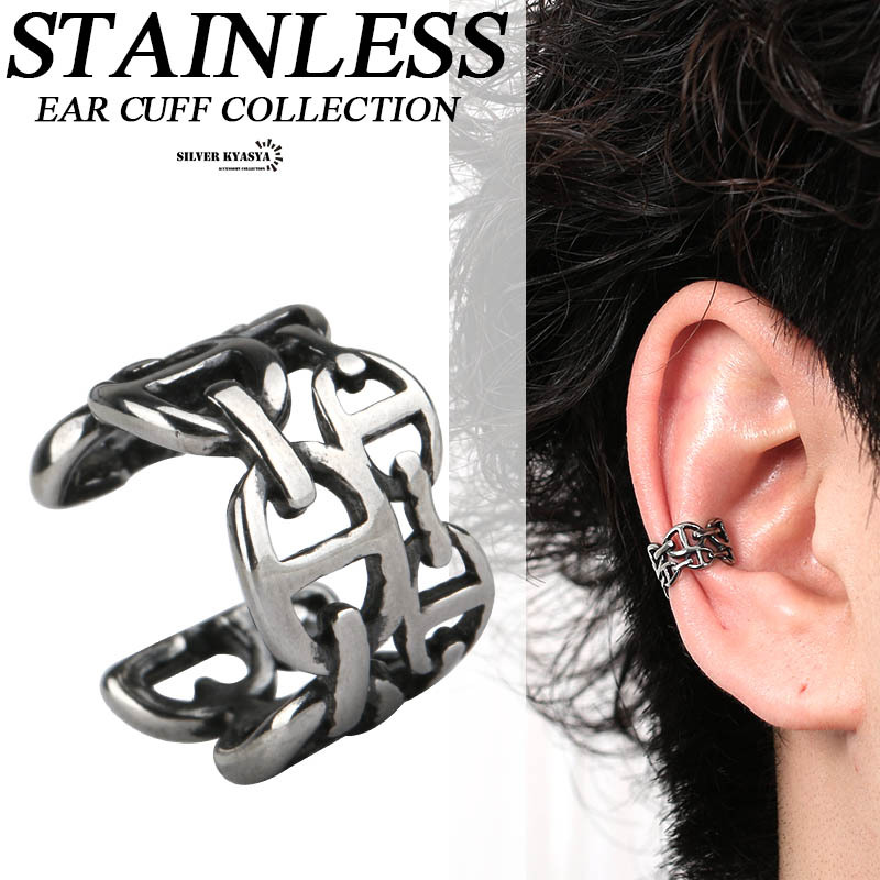 - ステンレス イヤーカフ シルバー アンカーチェーン イヤーカフ 片耳用 UNISEX 耳飾り イヤークリップ ピアス