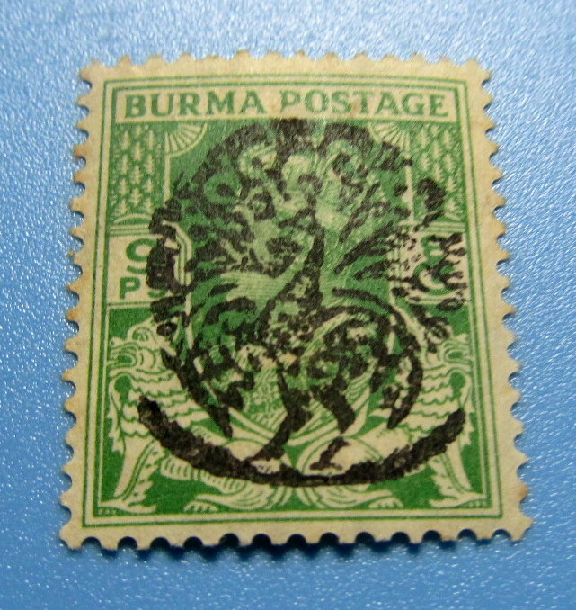 - 南方占領地切手 ビルマ 孔雀加刷 9P 裏のり弱い 丸まり 裏面汚れ 詳細不明