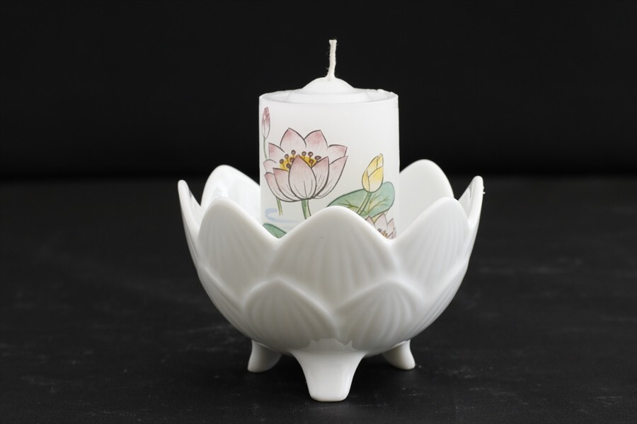 - 蓮絵入り ■ ローソクセット(白磁)■ ご進物に ■ ローソク6本+燭台1本 ■ 仏前 お盆 お彼岸 お墓参り 供養 法事 法要