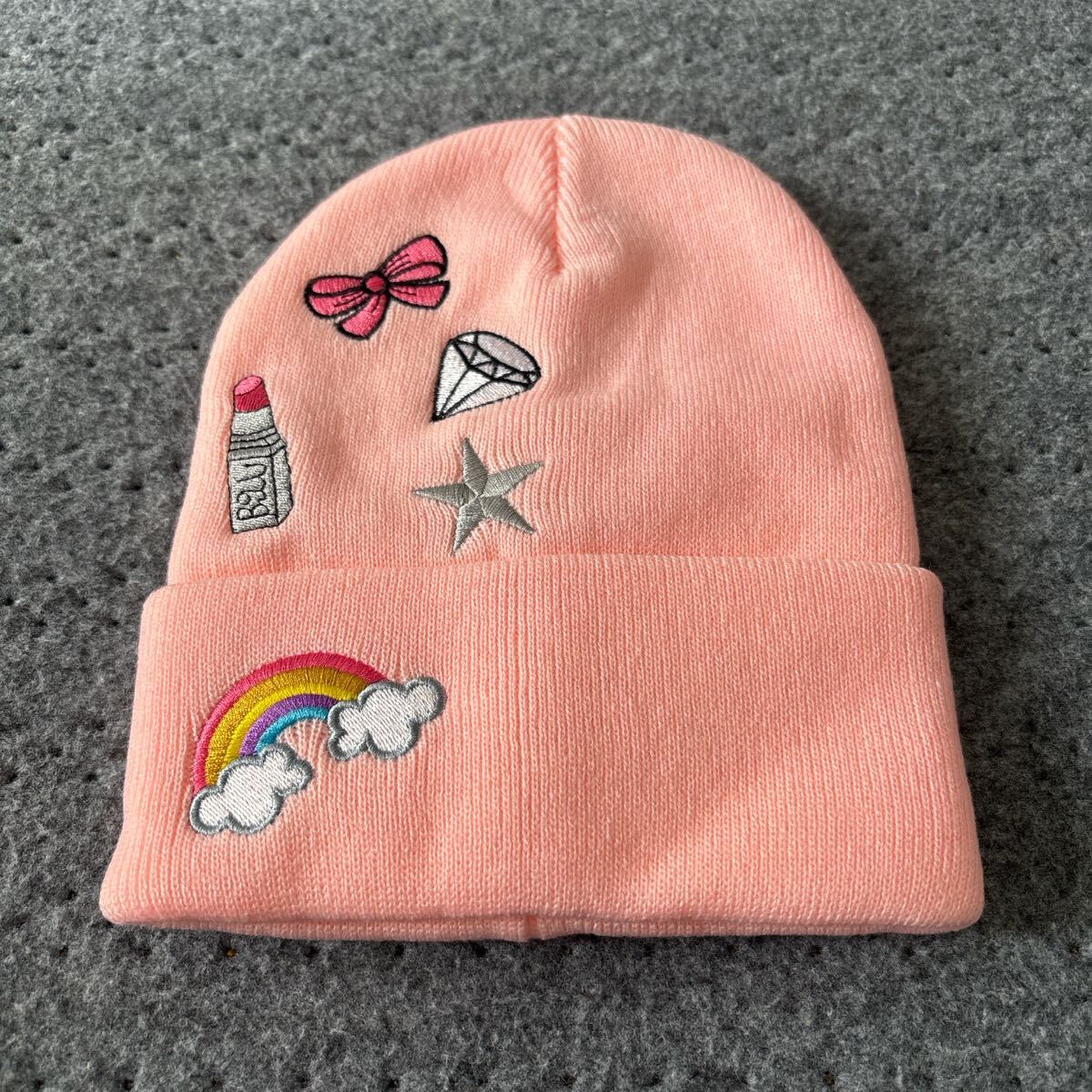 > 未使用●POP ポップ ワッペン ニット帽/帽子/ニットキャップ/ピンク/レディース/防寒具/ファッション/小物/スポーツ/ウィンター★2629-4