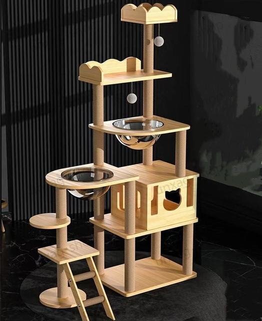 - キャットタワー 透明宇宙船 頑丈 据え置き木製 麻紐 爪とぎボール 猫ベッド 大型 木目調 多頭飼い 据え置き型 爪とぎ 猫タワー 高さ135cm