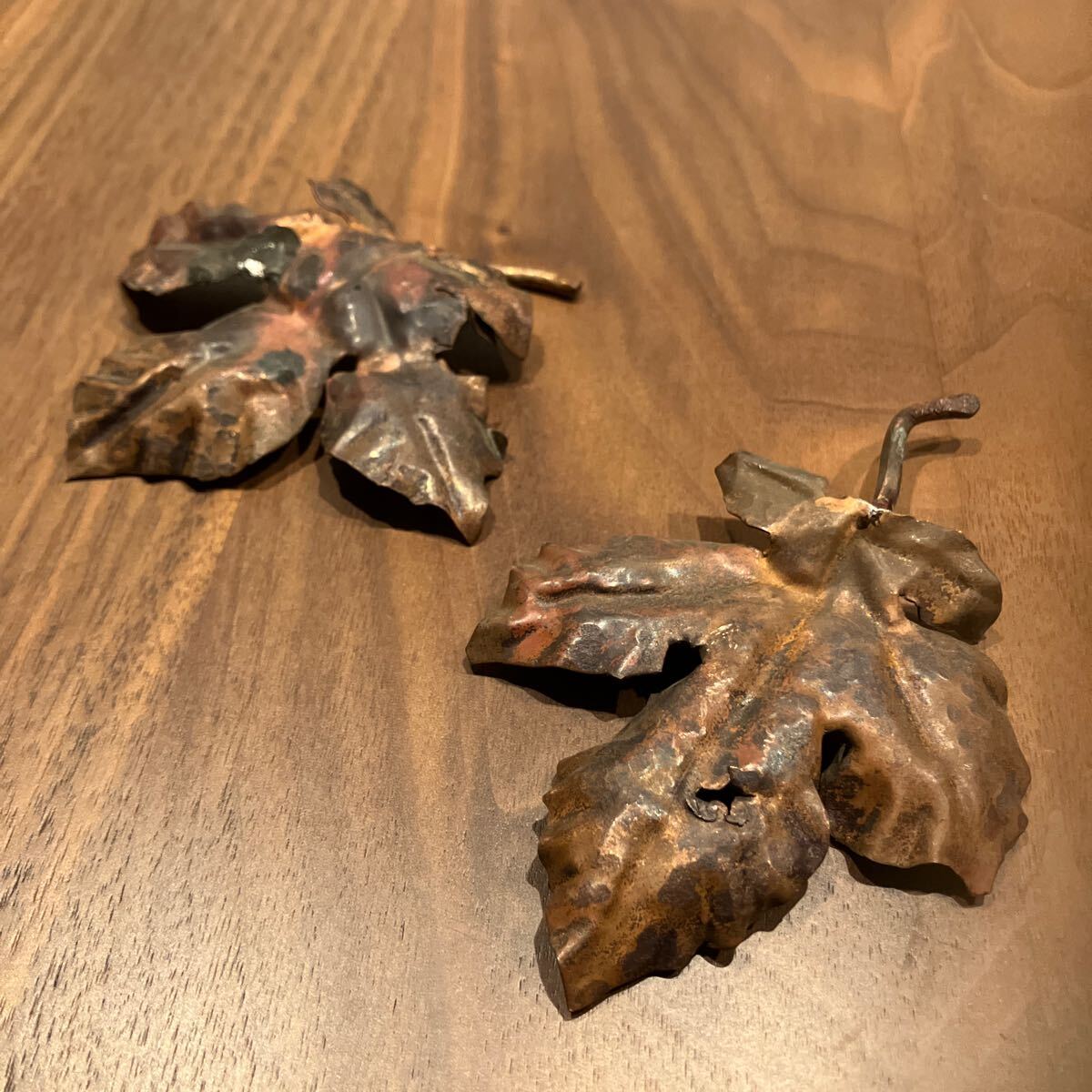 - 葉っぱ 銅板 蚤の市 コレクター 雑貨 インテリア 置物 落ち葉 可愛い リアル ハンドメイド