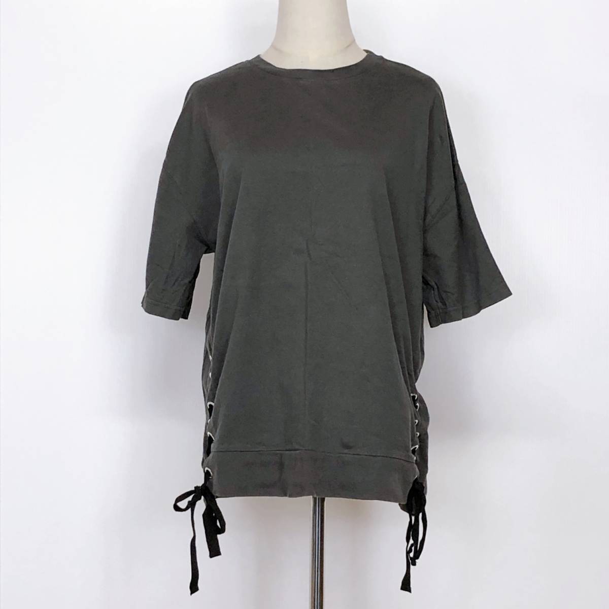 - YX427 C.O.L.Z.A レディーストップスTシャツ半袖リボンMサイズ グレー 灰 無地 綿100% カジュアル おしゃれ 夏 シンプルデイリーカジュアル