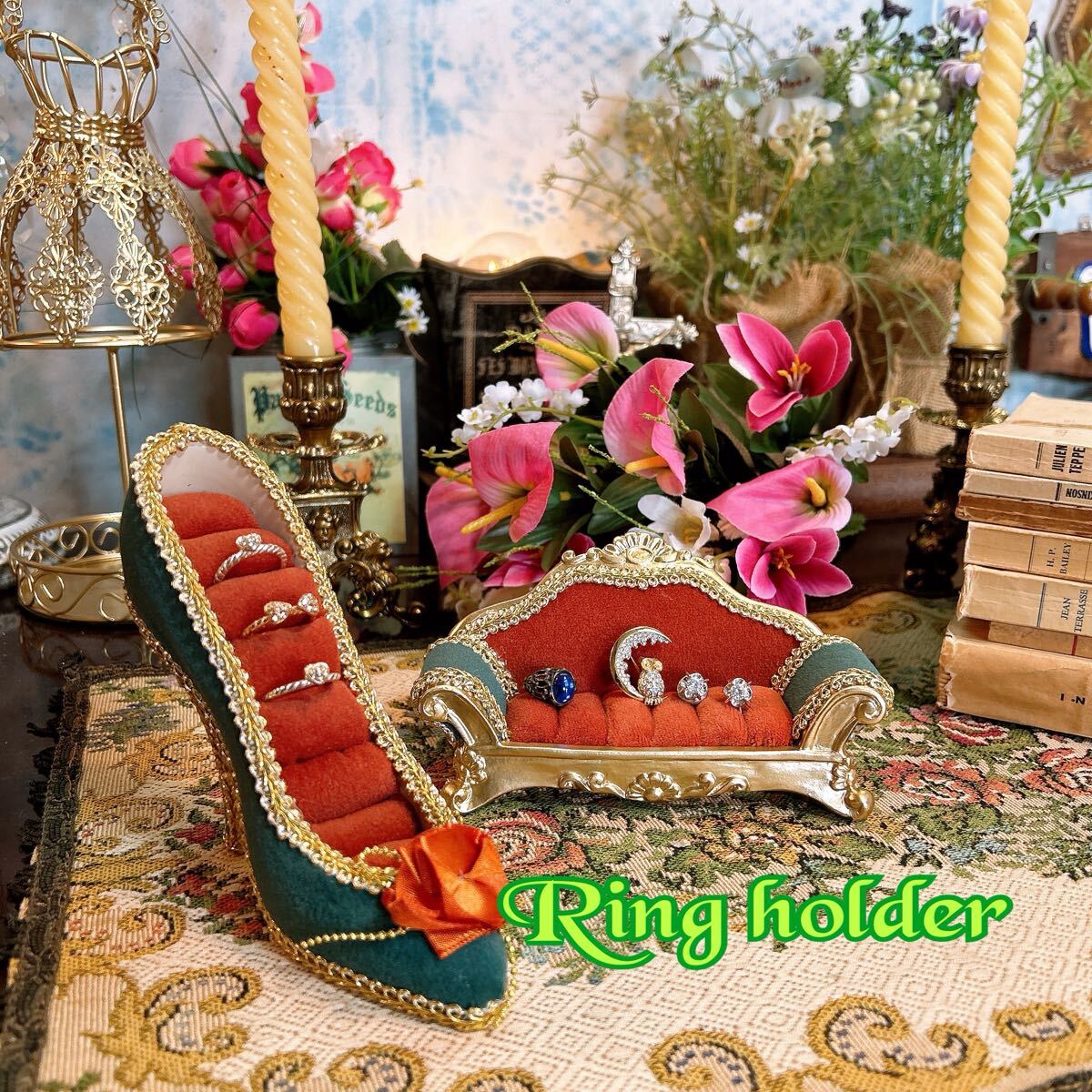 - アンティーク雑貨アクセサリーホルダー 2個セットgreenカウチハイヒール#店舗什器#アクセサリースタンド#アンティーク