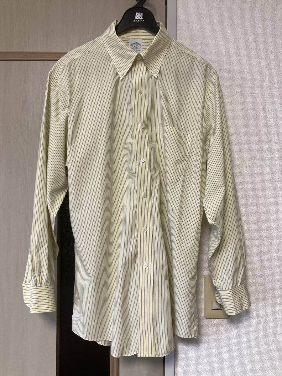 - ★ブルックスブラザーズ Brooks Brothers 長袖 シャツ BD ボタンダウン SLIM FIT 黄色 イエロー ストライプ ノンアイロン 16-32 難あり