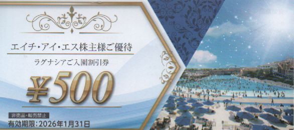 > エイチ・アイ・エス 株主優待券 ラグナシア入場割引券 5名まで 最大2500円割引 有効期限:2026年1月31日 普通郵便・ミニレター対応可