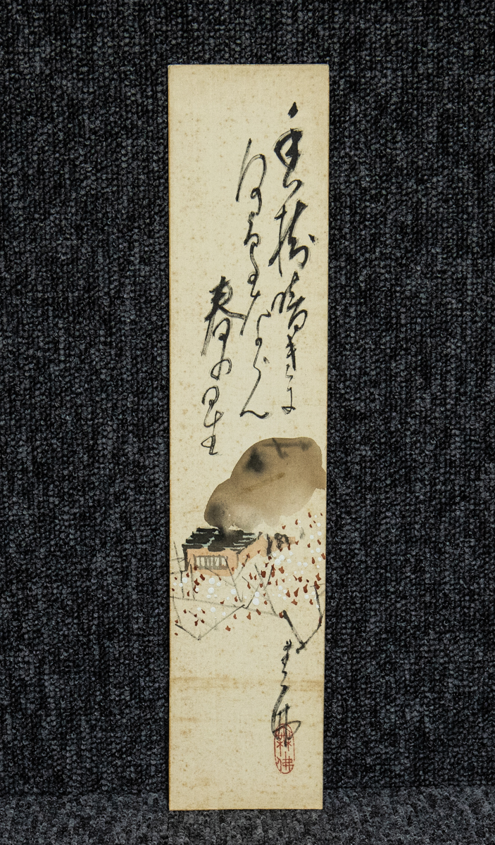 - 短冊ー1836 中川無仏 梅花図 絹本 幅広短冊【真作】