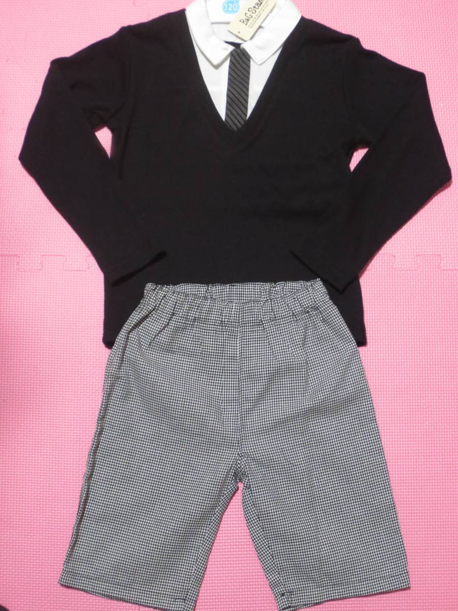 - 新品 120 フォーマル上下2点セット 長袖Yシャツ風 ベスト重ね着風ポロシャツ ハーフパンツ 子供 男の子 卒園式 小学校 入学式 送料無料