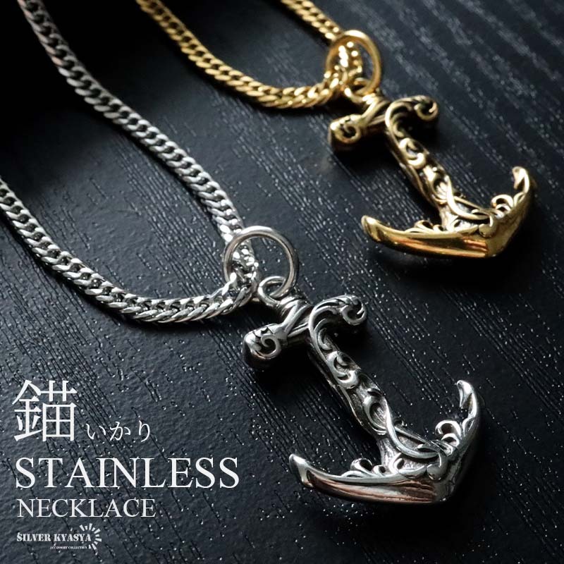 - (ゴールド、50cm) ステンレス アンカーネックレス 錨ネックレス ダブル喜平チェーンネックレス メンズ 男性 金アレ対応