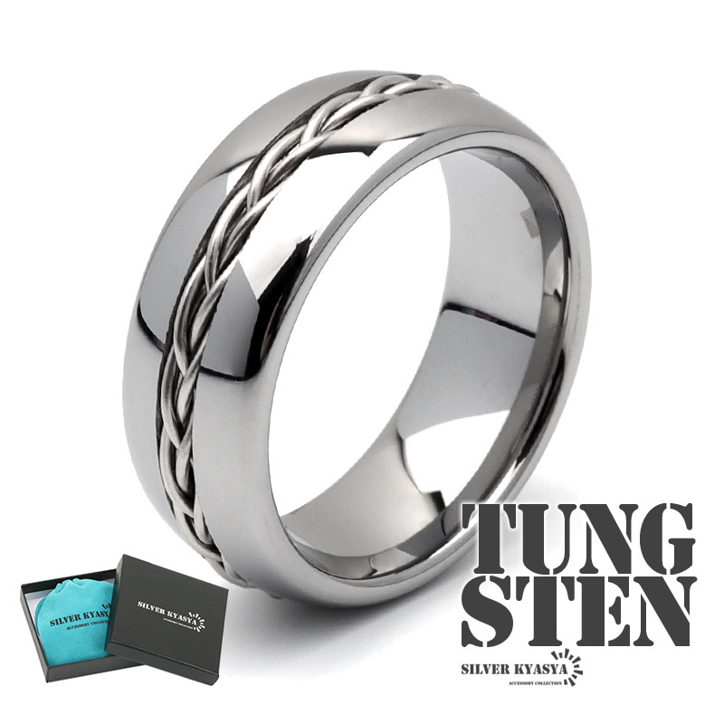 - (31号) タングステン スピガリング 指輪 メンズ リング シルバー メタリック 金属アレルギー対応 専用BOX付属