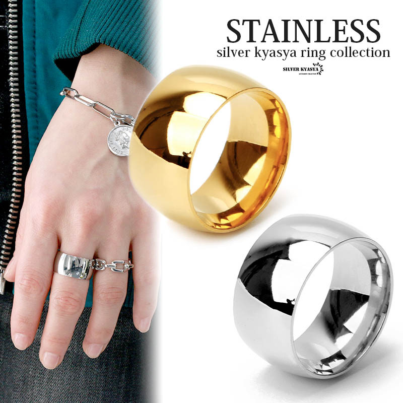 - (ゴールド、16号) 甲丸リング ステンレス ユニセックス シンプル 太幅 ごつめ シルバー ゴールド 重ね付け 指輪