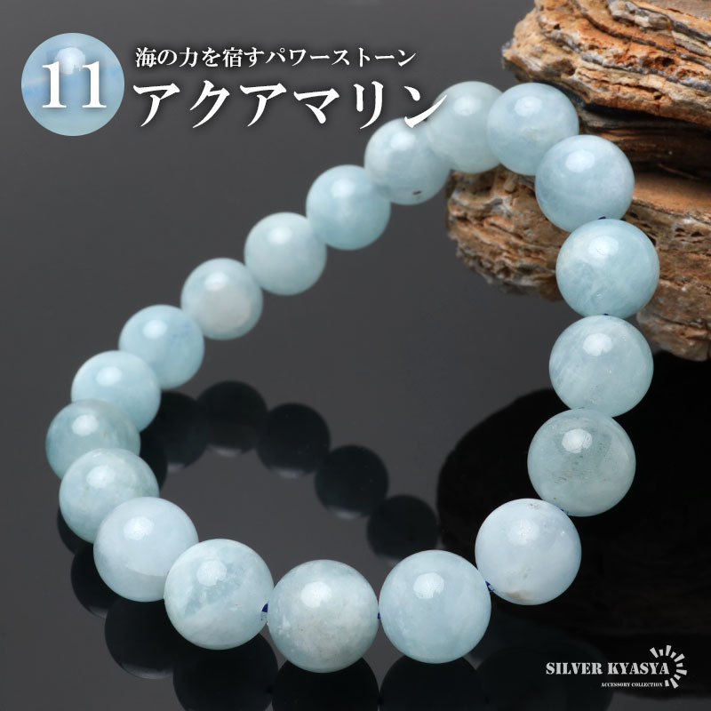 > (Mサイズ) パワーストーンブレスレット 数珠ブレスレット アクアマリン 11mm 天然石ブレスレット ブラジル産