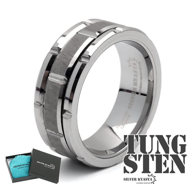 - (31号) タングステン タイルリング 指輪 リング シルバー メタリック レンガ つや消し ごつめ 専用BOX付属