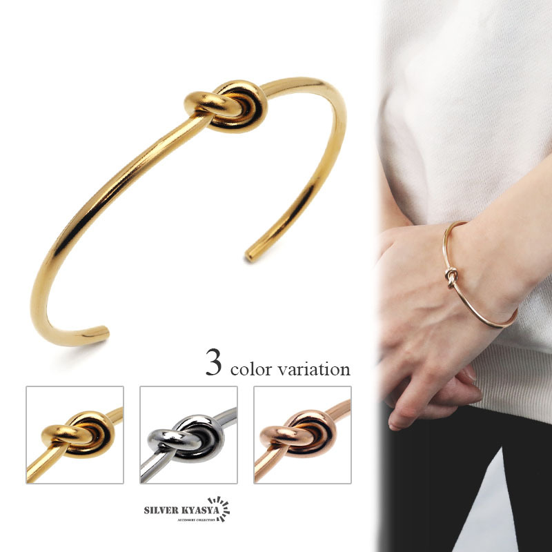 > (ゴールド) ステンレス ノットバングル 細身 バングル 結び目 ゴールド シルバー ピンク gold シンプル
