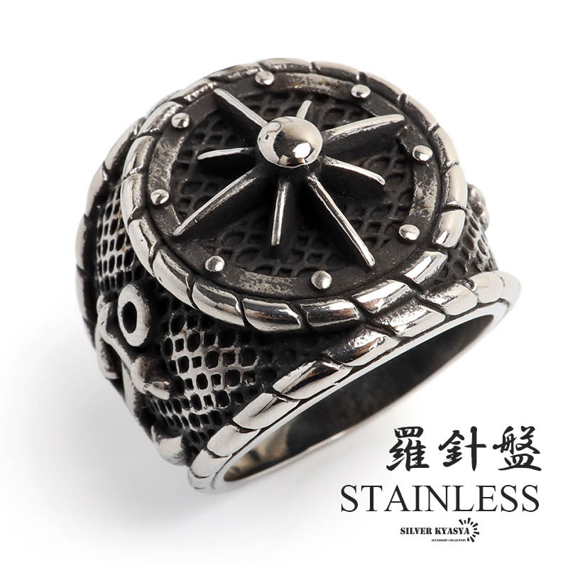> (22号) ステンレス 羅針盤リング 印台リング コンパスリング シグネットリング シルバー アンカー メンズ 金属アレルギー対応