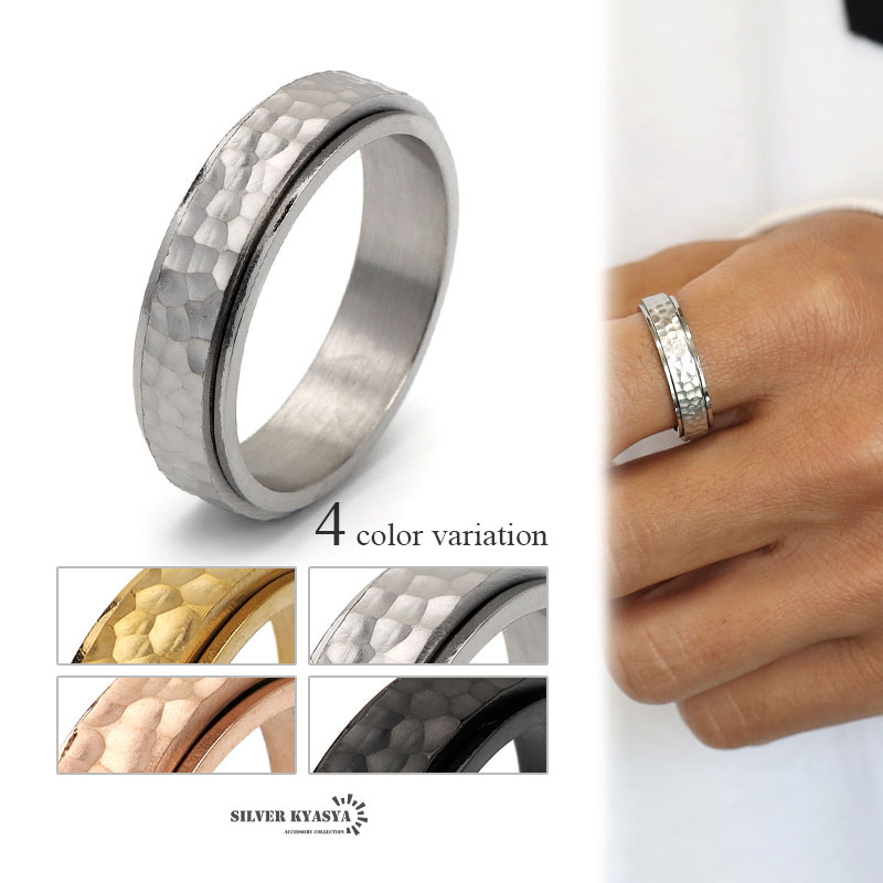 - (ゴールド、19号) 槌目リング つや消し ステンレス ギミックリング ゴールド シルバー 凹凸 回転 つけっぱなしOK