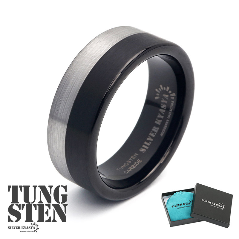 - (31号) タングステン ツートン リング 指輪 シルバー 銀 黒 ブラック つや消し マット スマート バイカラー BOX