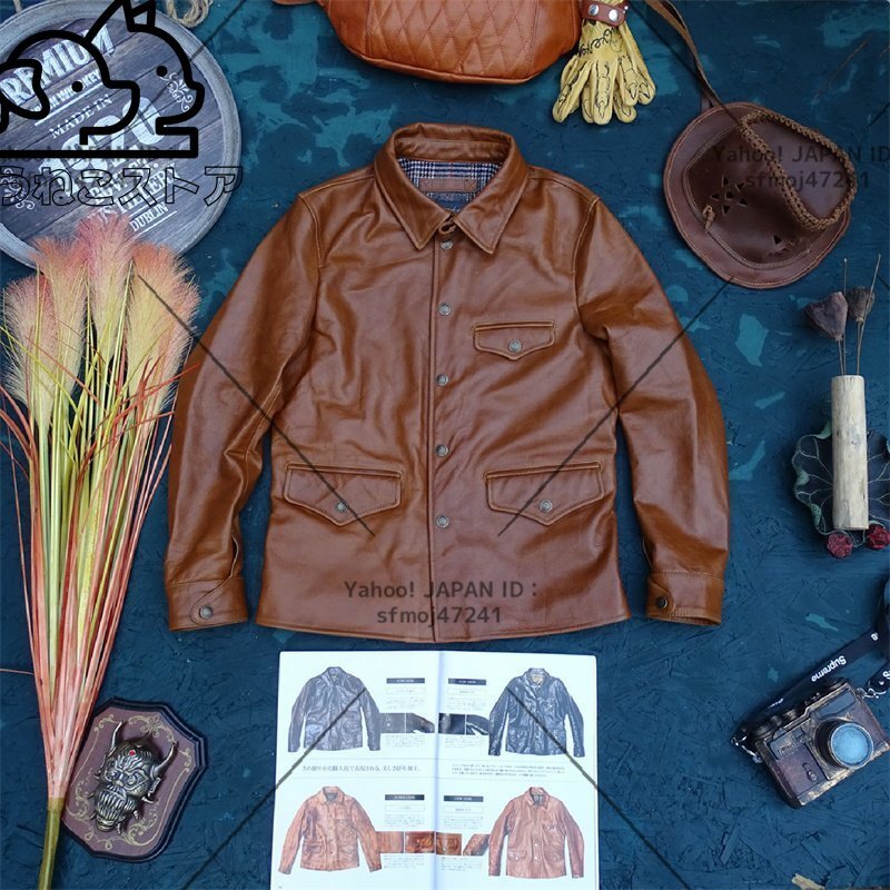 - 50sヴィンテージ復刻 高品質カウレザー レザージャケット☆本革 革ジャン アメカジM~3XL