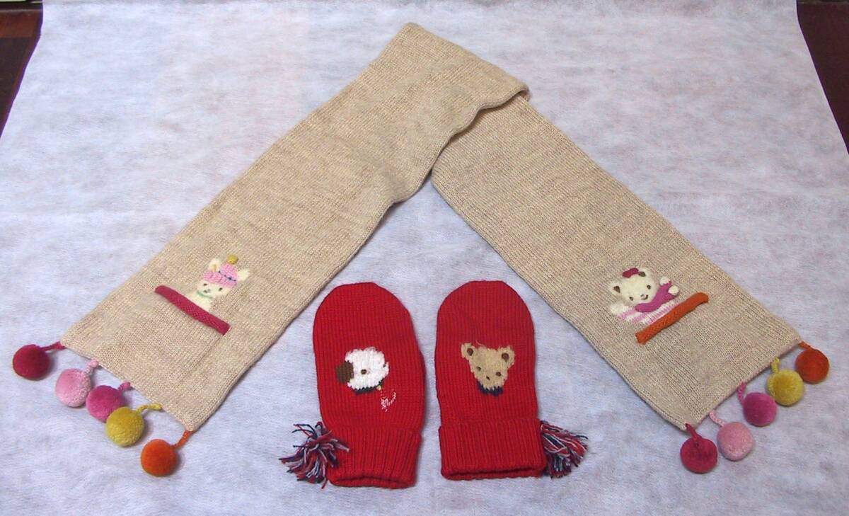 - familiar /ファミリア マフラー&ミトン手袋 キッズ用 ピンク&レッド 美品